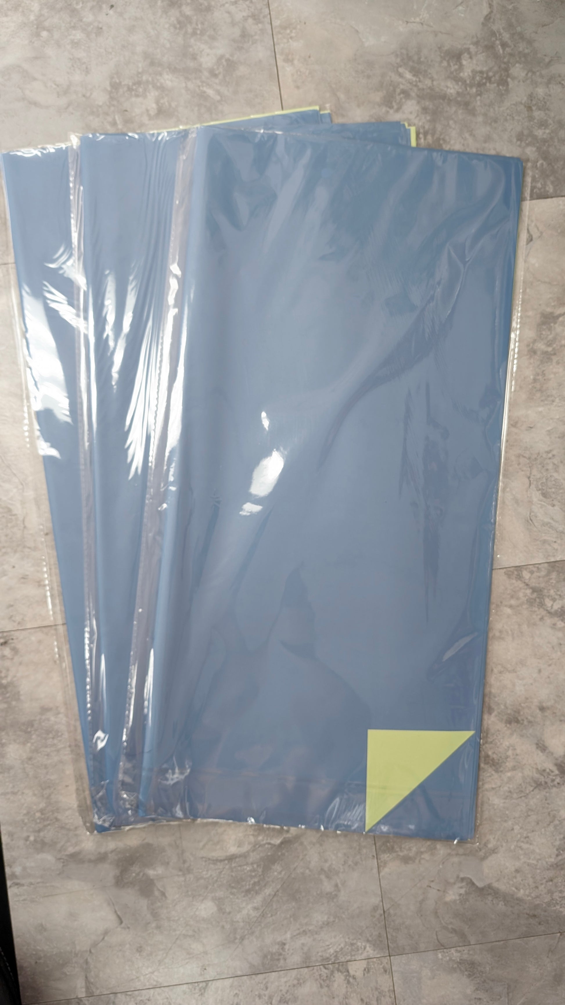 The Cardboard wrapping papers all have 10 sheets in the pack. The Tissue wrapping papers have between 15-20 sheets.